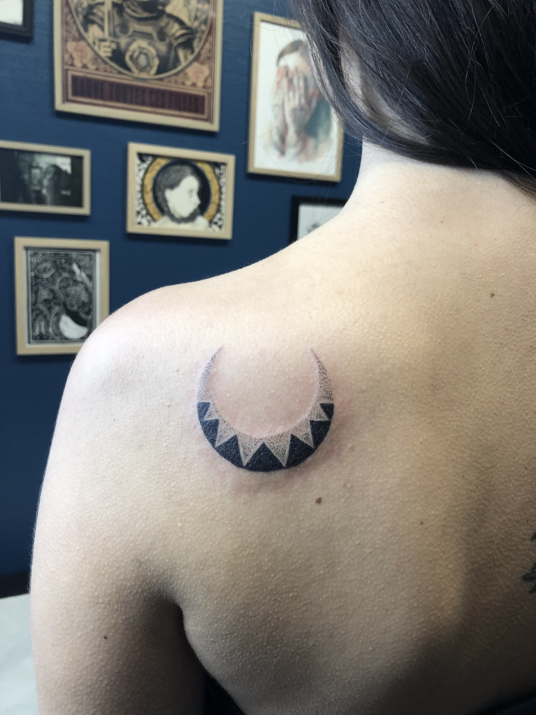 Inspirée par la puissance des guerrières et de Lilith, L’Orageuse crée des compositions reliant sororité et courage grâce au dotwork et aux ornements.